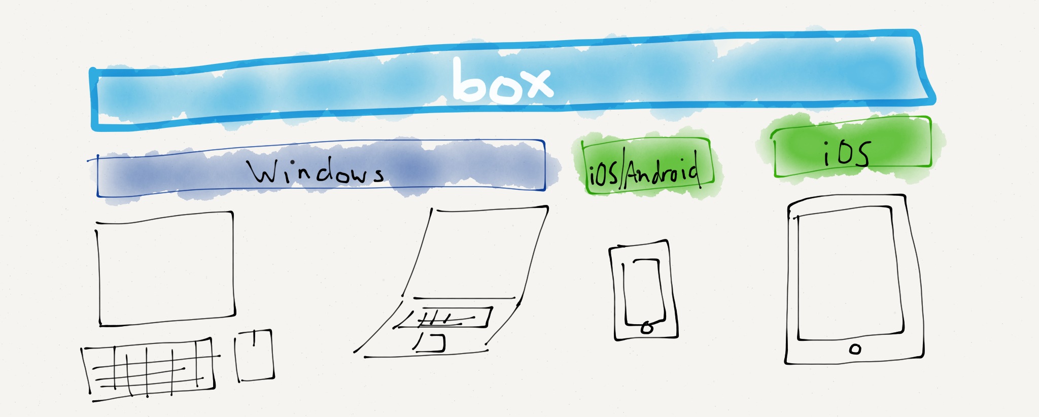 At the same time, Box has embraced smartphones and tablets, building and updating apps on all the platforms, often well before competitors. This results in a service that looks something like this: